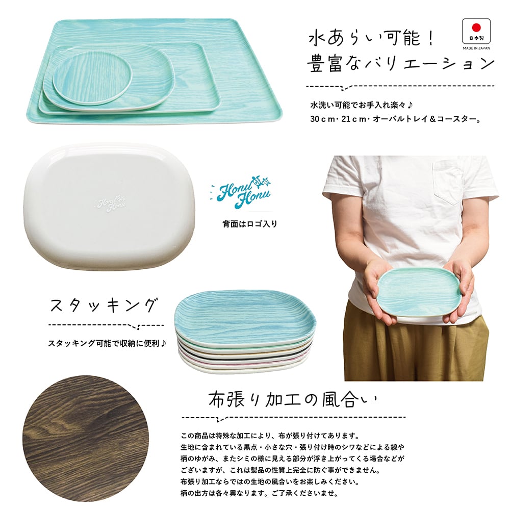 【 HonuHonu 】 布張り オーバルトレイ
